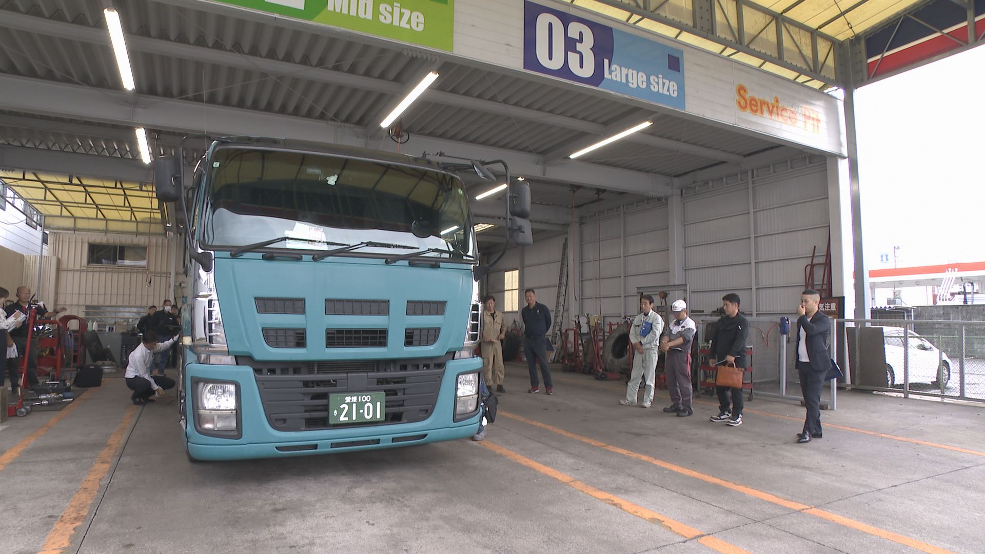 企業の経営者や運行管理者ら約50人が参加し、タイヤに実際にハンマーを当ててパンクの有無を確かめる実技講習などが行われました。