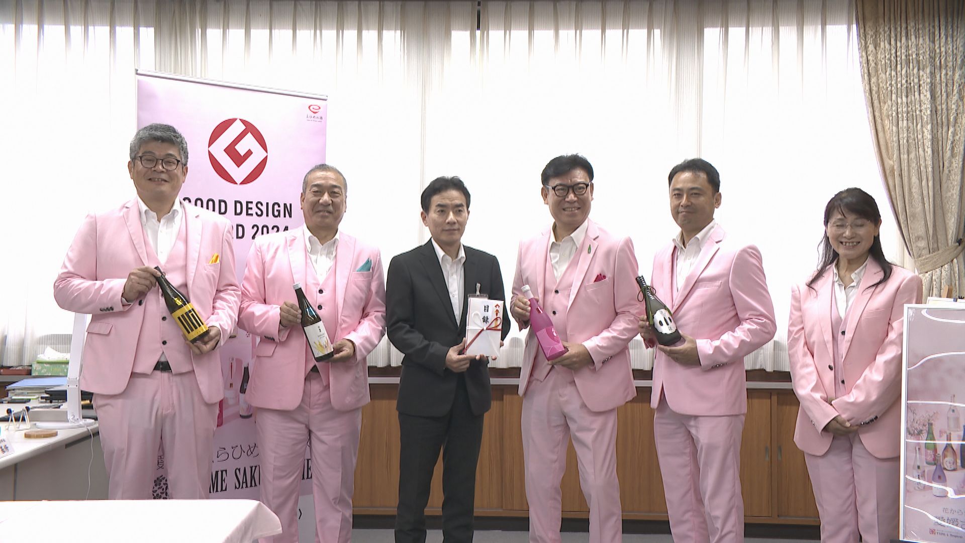 越智浩理事長らが県庁を訪れ、酵母から原料米や仕込み水までを県産素材にこだわった地酒プロジェクト、「愛媛さくらひめシリーズ」の売上の一部、30万円の目録を手渡しました。