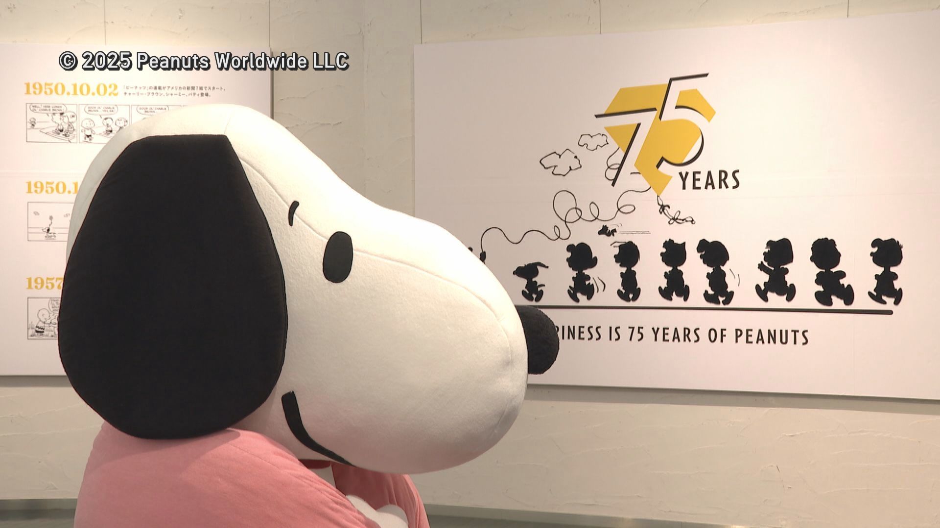 この展覧会は「PEANUTS」のコミック誕生75周年と、タオル美術館の開館25周年を記念して開かれたものです。