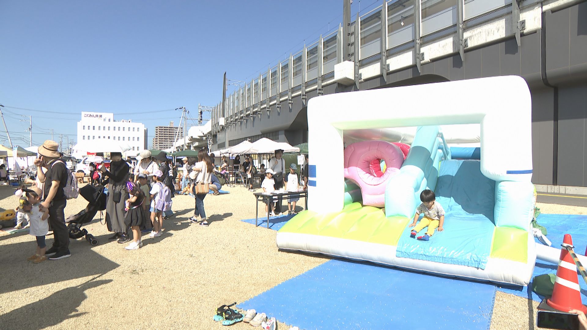 新幹線の形をしたふわふわアスレチックでは子どもたちが元気に遊ぶ姿が見られました。