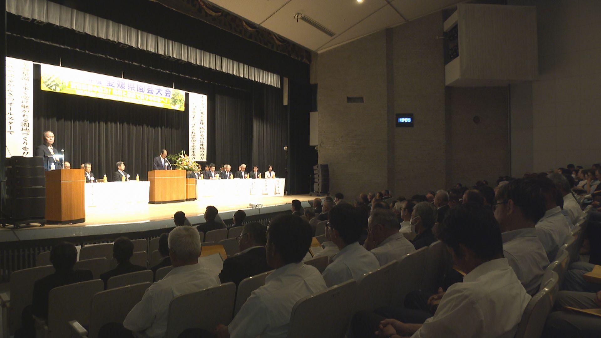 松山市内で県園芸大会が15日開かれ、果樹生産者ら約500人が出席しました。