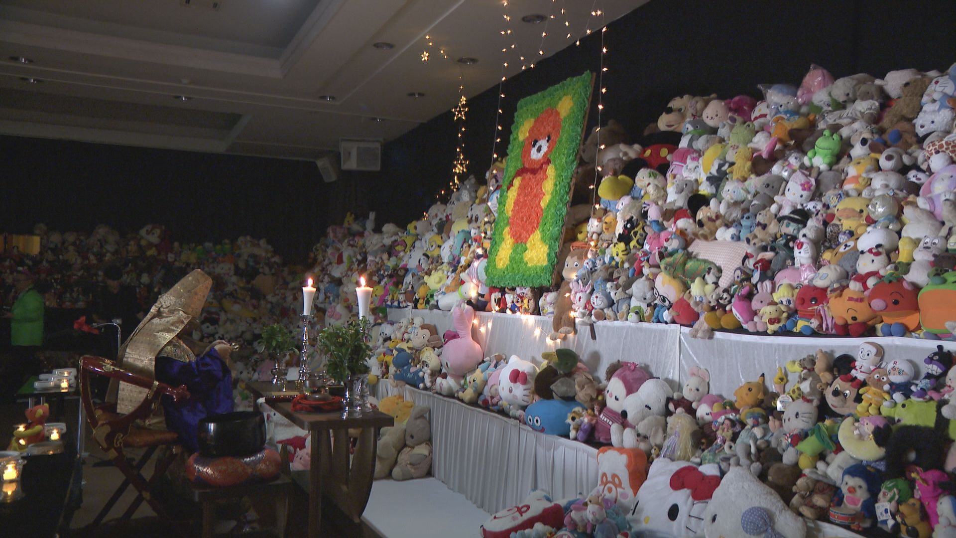 供養祭は葬儀会社の村田が開いていて、会場には県内から1万5000体ほどのぬいぐるみが寄せられました。