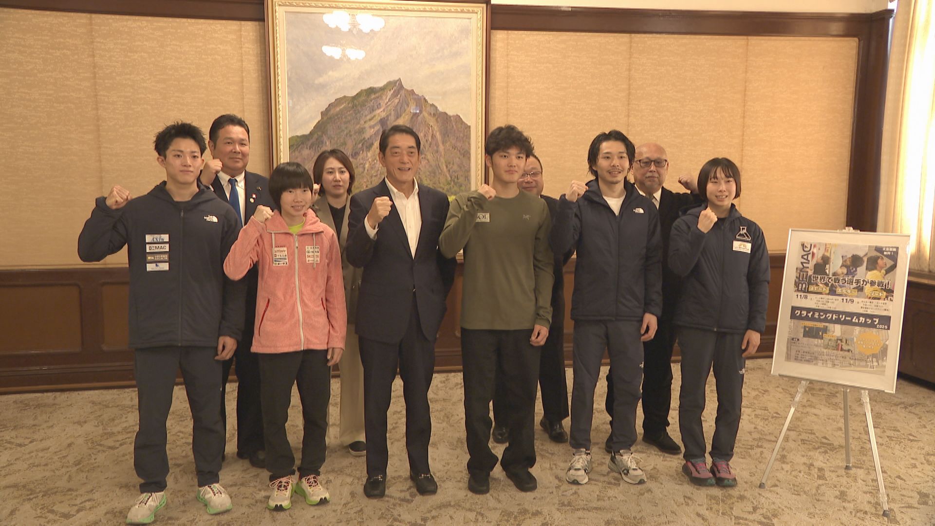 8日から西条市で開かれる「クライミングドリームカップin西条」を前に、スポーツクライミングの日本代表選手らが県庁を訪れました。