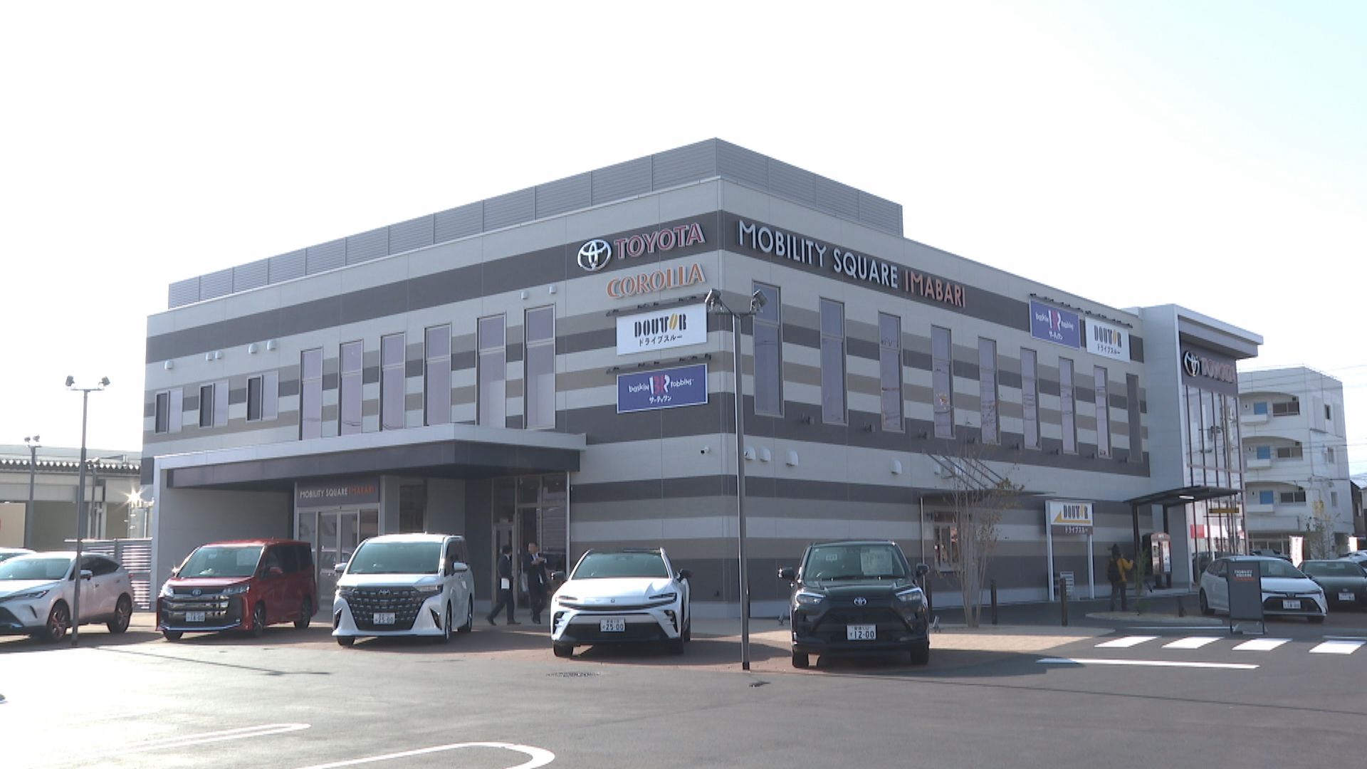 オープンしたのは「モビリティスクエア今治」で16日はトヨタカローラ愛媛の松田卓恵社長らが出席しテープカットなどで開店を祝いました。