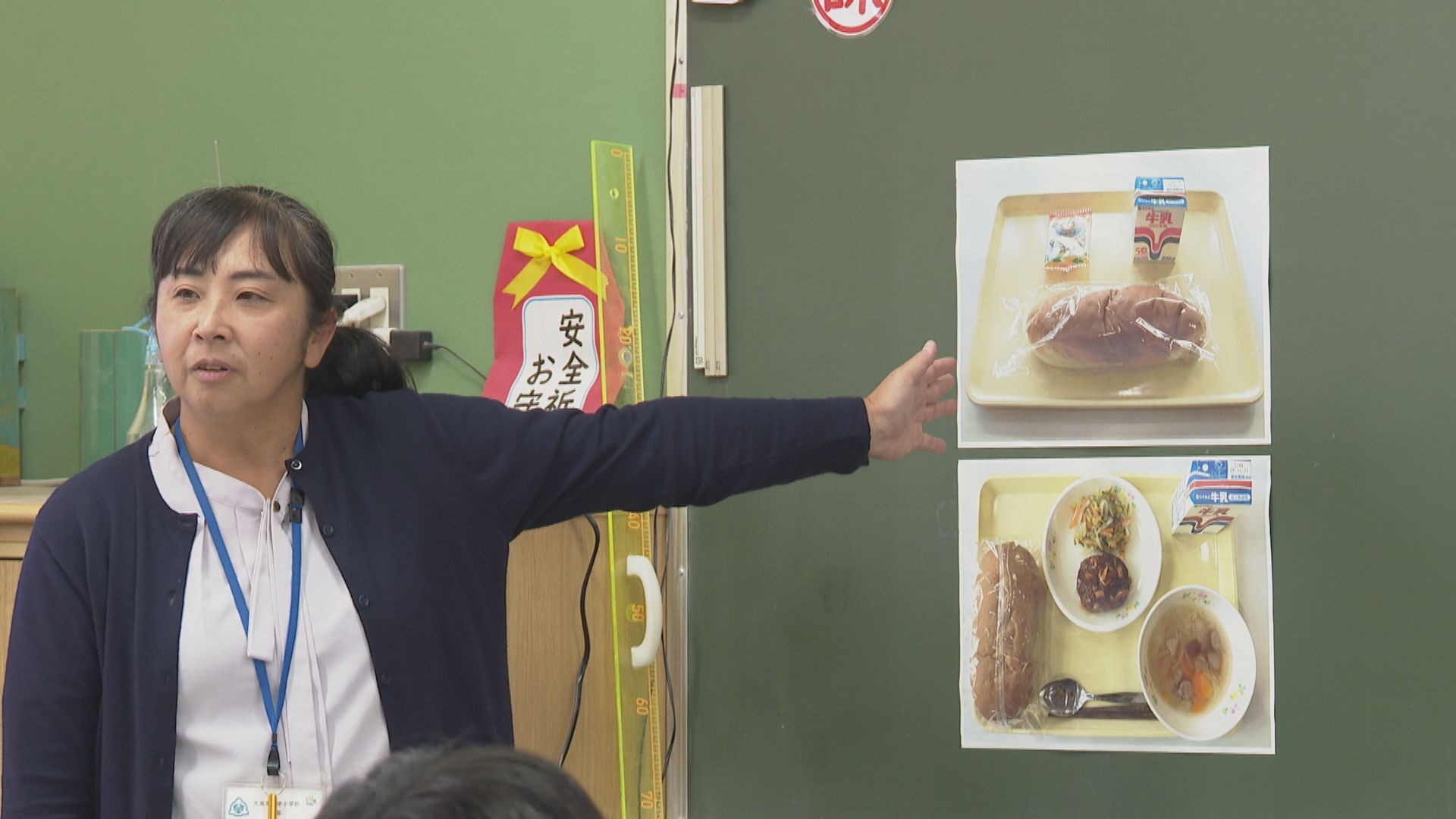 県内の小中学校の栄養教諭らおよそ30人が参観したこの授業、子どもたちは、災害に備えて適切な食品を備蓄することの大切さを真剣に学んでいました。