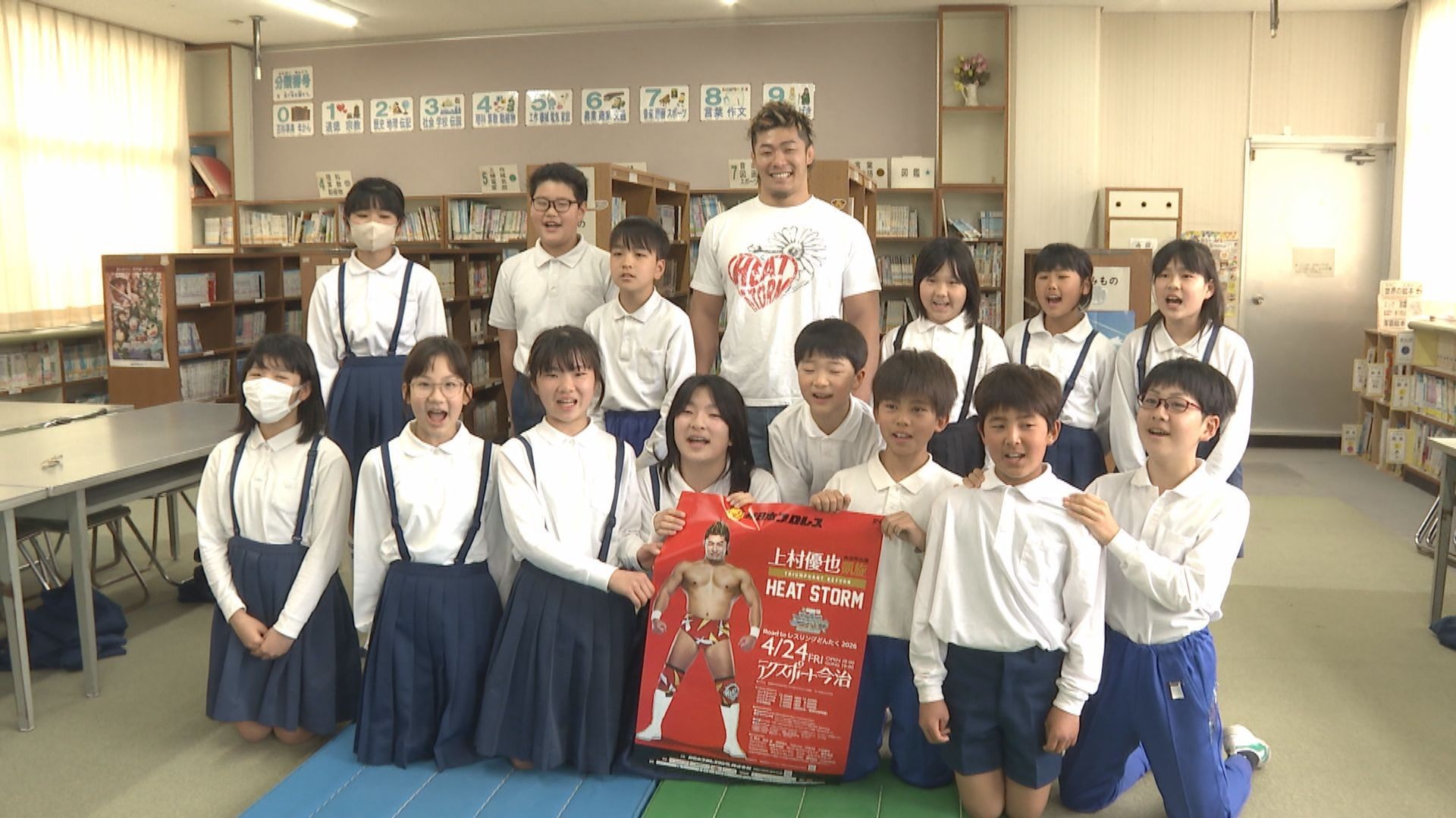 7日、今治市の国分小学校にやってきたのは、新日本プロレス所属の上村優也選手です。