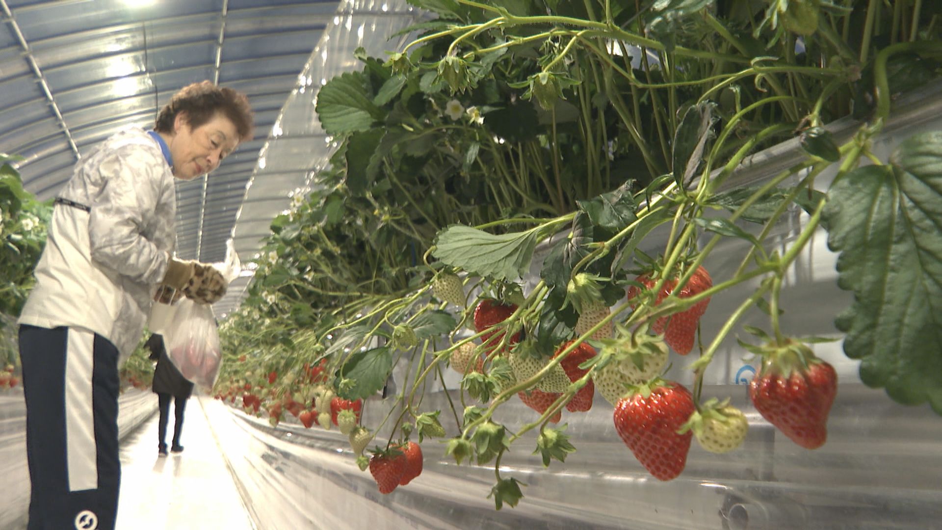 ナイトいちご狩りは、5月中旬までの毎週水曜日、午後6時半から8時まで開かれています。