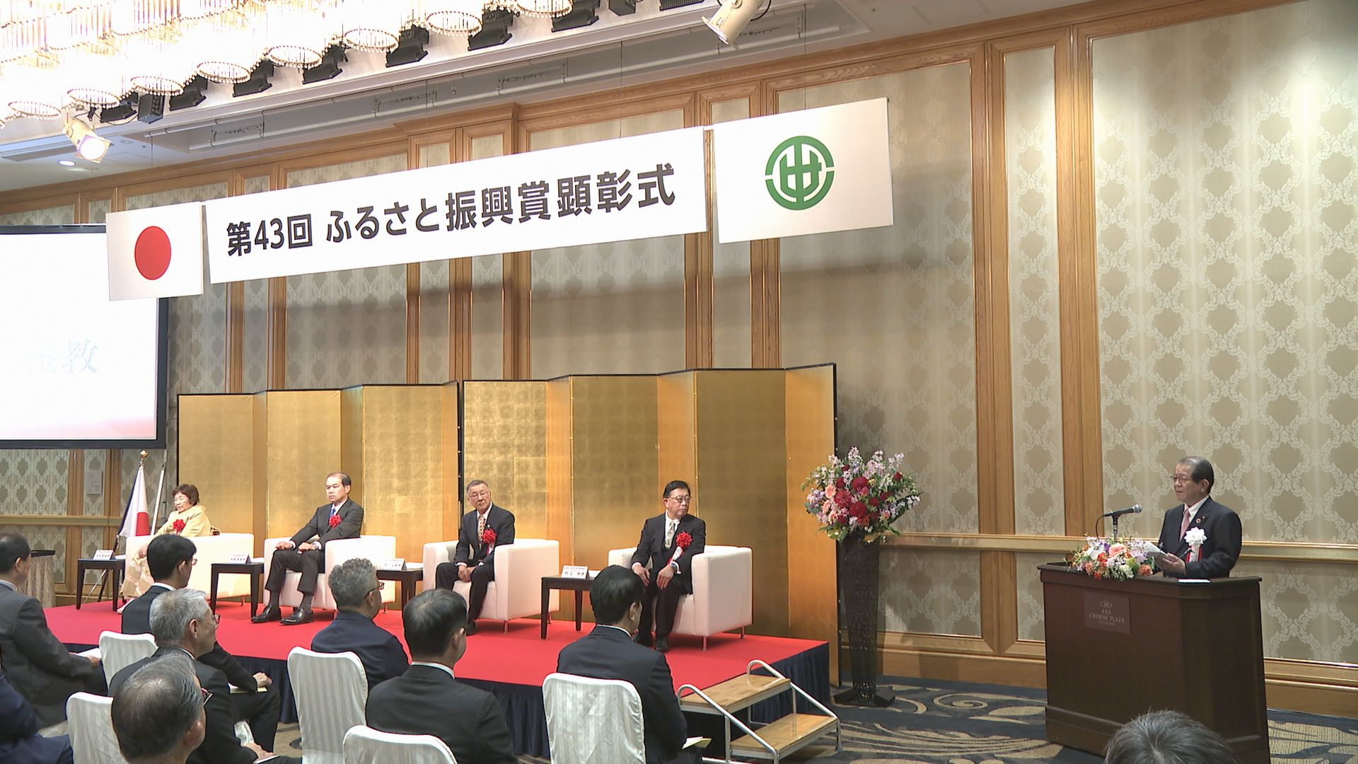 愛媛県内の産業経済の発展などに功績があった企業や個人などに贈られる、愛媛銀行の「ふるさと振興賞」の顕彰式が21日、松山市で行われました。