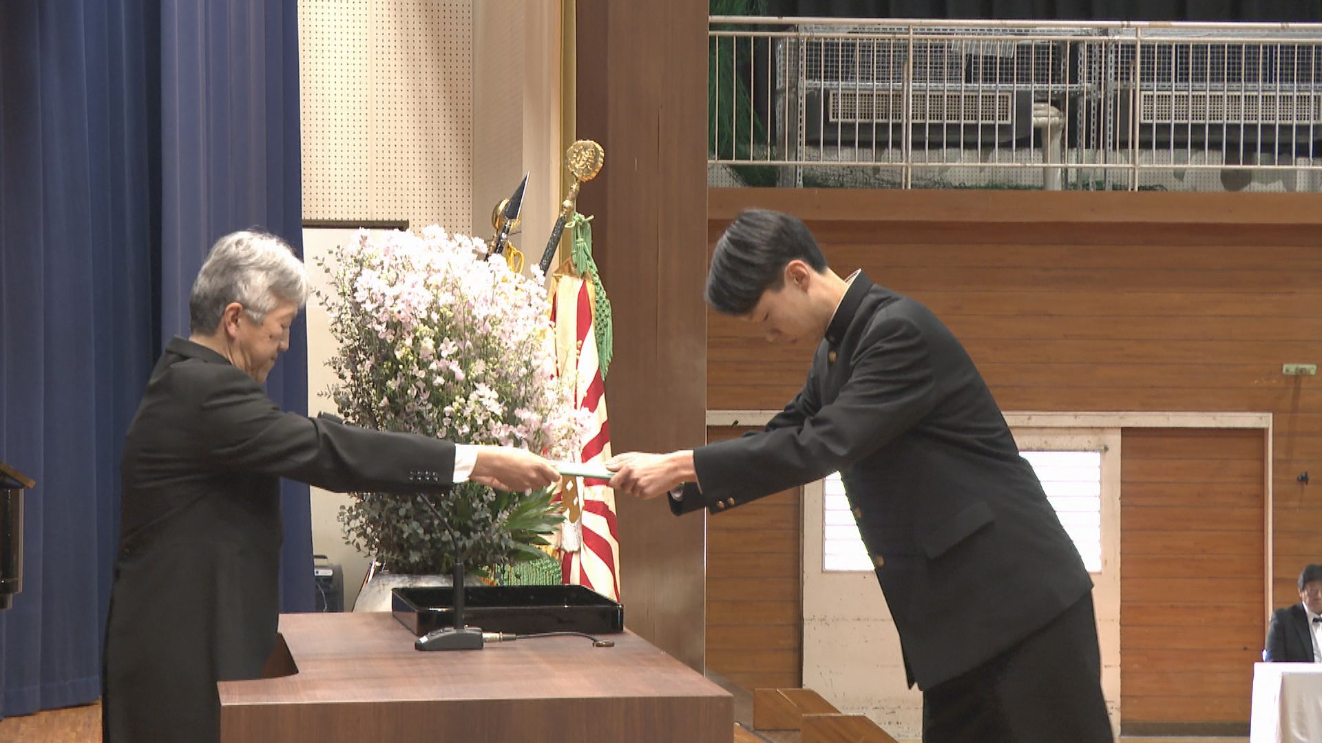 このうち松山東高校では347人が卒業の日を迎え、式では沖田浩史校長が「かけがえのない出会いや経験があって皆さんは成長してきた。成長は続いていき、これで終わりではありません」などと、はなむけの言葉を贈りました。