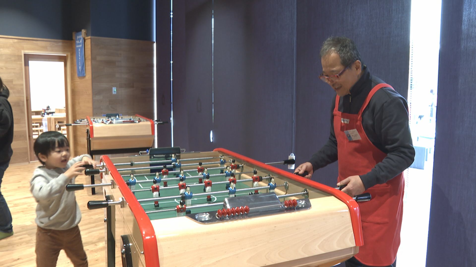 また、全国にある姉妹館の中でも初めてとなるサッカーをテーマにしたエリアも設けられ、テーブルサッカーなどの遊びを通じて今治らしい交流の場を提供しています。