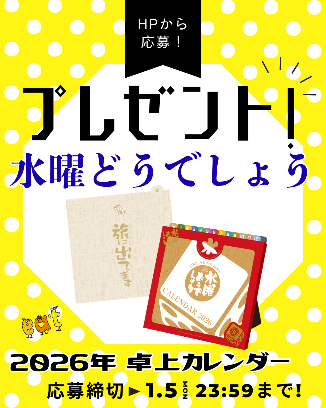 「水曜どうでしょう」2026年 卓上カレンダープレゼント!