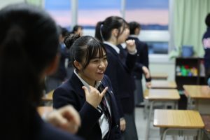 ダンス部に入りたくて遠方から通う子もいるという狛江高校ダンス部。高校を代表しているという意識もあり、大会や遠征も制服で行くといいます。