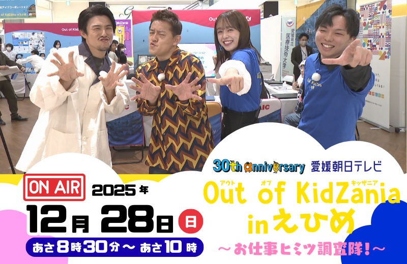- 特別番組「30th愛媛朝日テレビ Out of KidZania inえひめ ~お仕事ヒミツ調査隊」が2026年12月28日(日)午前8時30分に放送決定!